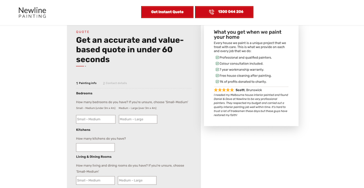 Instead of the traditional “contact us for a quote” model, Newline Painting allows potential customers to get a price indication upfront, before ever speaking to someone.